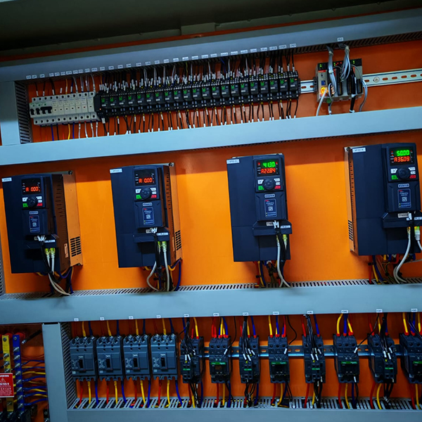 Installed a cutting-edge PLC-VFD pump control system at a premier Salalah 5-star hotel. Four VFDs (2 duty + 2 standby), PLC-controlled via Modbus TCP/IP, dynamically maintain precise chilled water pressure.